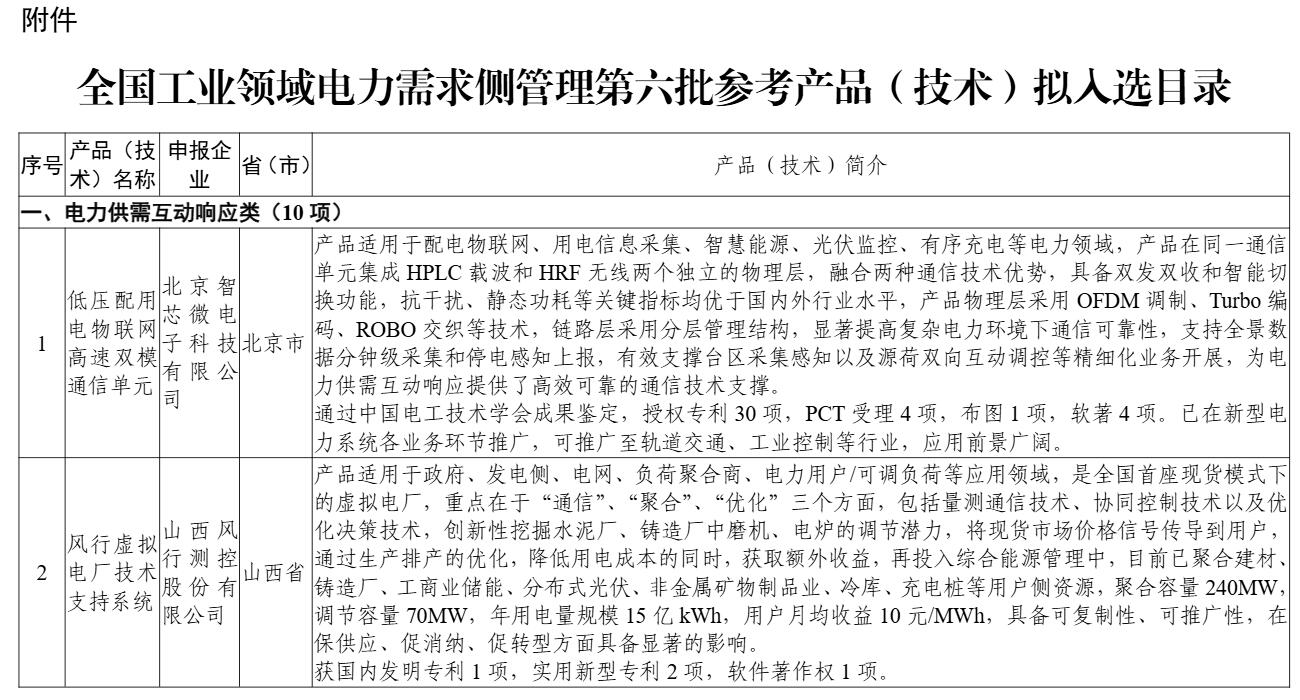 附件:全國工業領域電力需求側管理第六批參考產品(技術)擬入選目錄