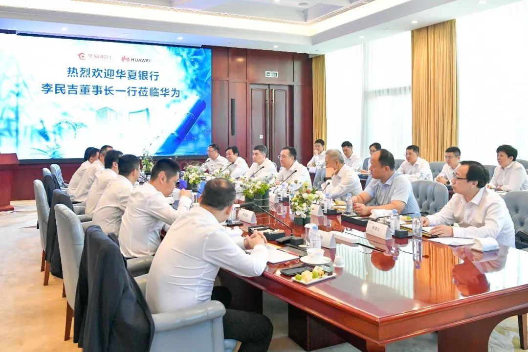 儀式期間,雙方交流座談并參觀了華為展廳。華夏銀行詳細了解了華為數字化轉型新成果、金融解決方案等內容,并與華為專家充分溝通金融信息化建設愿景。