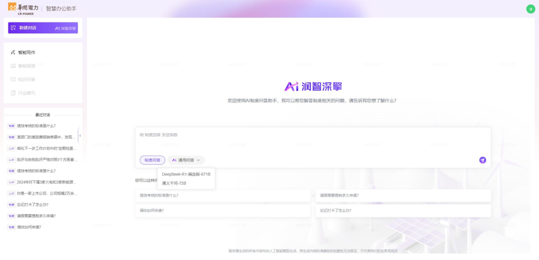 華潤電力基于DeepSeek671B大模型的深度解析能力,對419份制度文件進行結構化處理,構建制度知識庫,初步實現制度問答功能驗證。