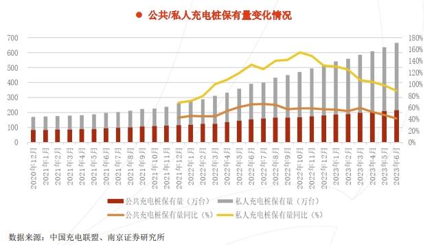 以2023年為例,在新增的充電樁中,私人充電樁的規模遠比公用充電樁大,前者約是后者的2.6倍。而私人充電樁是隨車配建的,也就是說,新增充電樁的車樁比雖然已經接近1:1,但其中有七成多是私人充電樁,不對外開放。