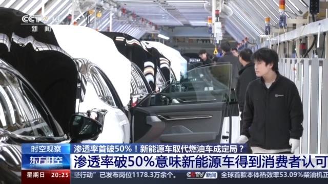 中國汽車流通協會乘聯分會秘書長 崔東樹:滲透率首超50%的話,目前意味著新能源車得到了消費者的日益的認可。而且新能源車產品的性價比已經達到了主流消費者接受的程度。證明了整個新能源車未來的發展潛力還是比較大的,呈現持續逐步上升的態勢。未來新能源車成為我們消費主流是必然趨勢。