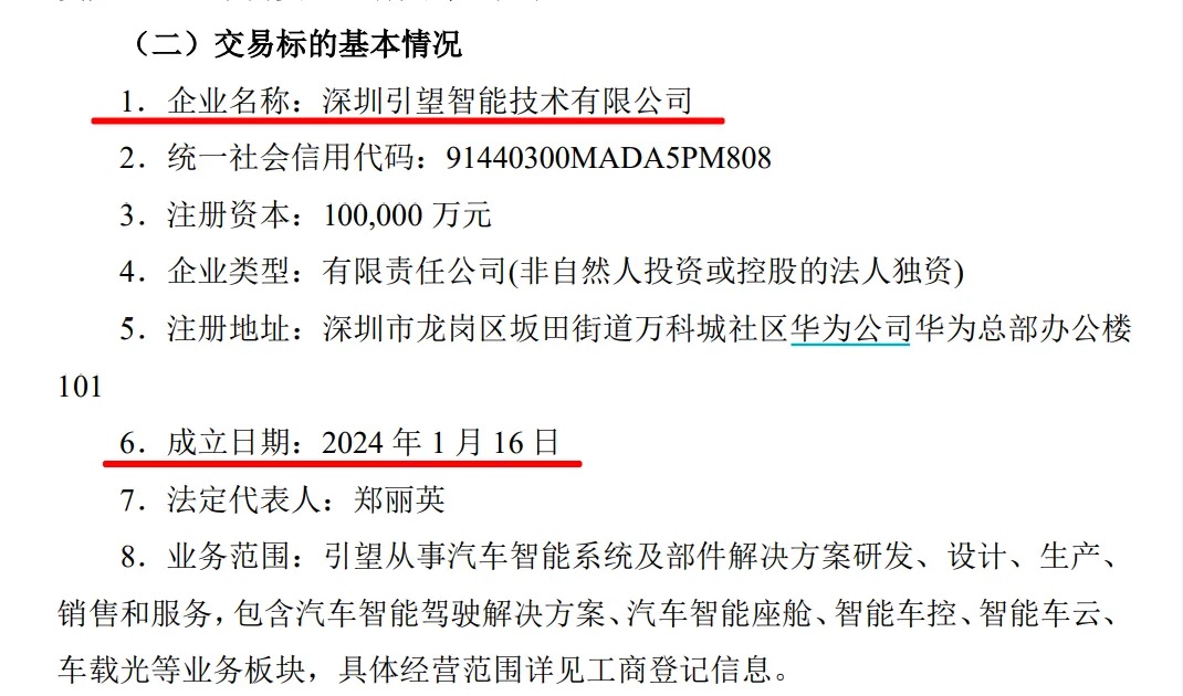 今年1月16日,華為已完成目標公司的注冊,名稱為深圳引望智能技術有限公司。資料顯示,深圳引望即為華為車BU成立的公司,成立于2024年1月16日,注冊資本為10億元,注冊地址在深圳市龍崗區坂田街道萬科城社區華為公司華為總部辦公樓101,目前華為持股100%。