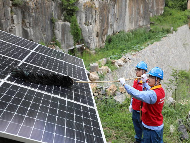 國網晉城供電公司員工在陵川縣嶺西村檢查光儲一體公用型微電網