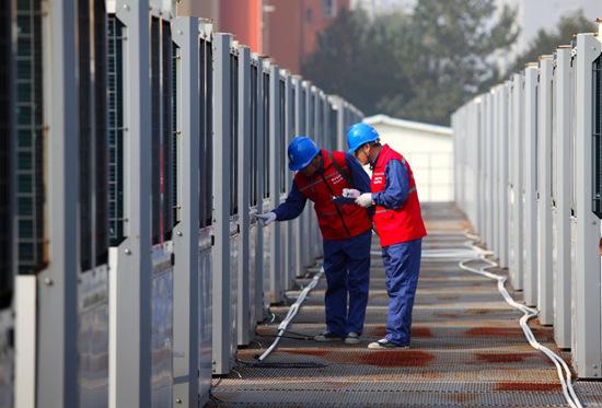國網趙縣供電公司工作人員對李春大道空氣能供熱站主設備進行巡視檢查。侯西果攝