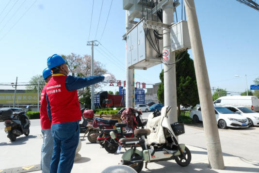 圖為工作人員深入院區各處供電點位開展專項用電安全巡檢,全面摸排院區整體供電環境。
