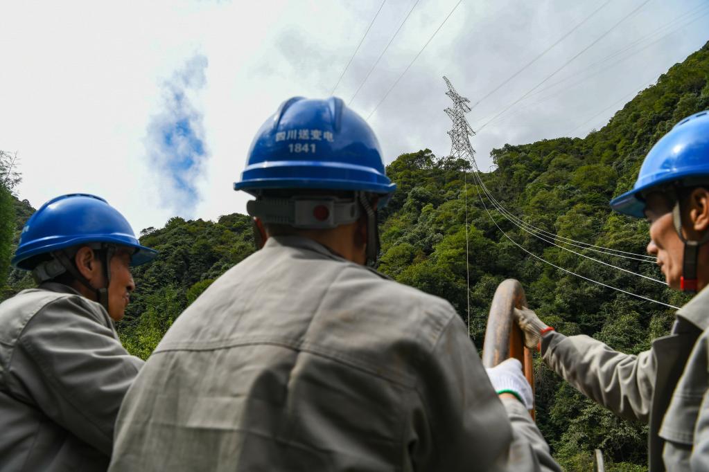 這是10月18日在四川省雅安市天全縣境內拍攝的電網線路。新華社記者 王曦 攝