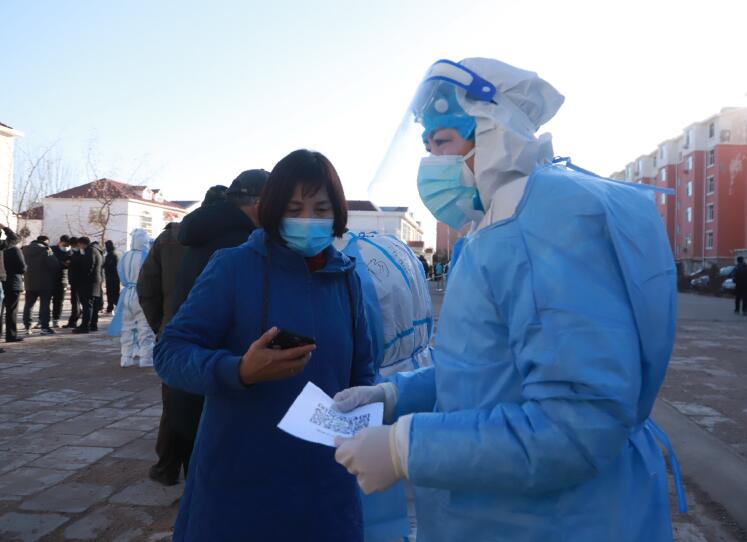 8時30分,核酸檢測準時開始。“請各位居民準備好自己的身份、健康碼,帶好口罩,有序入內。”志愿服務隊成員薛東在檢測點門口拿著擴音器說著注意事項。重復的話不知道重復了多少遍、二十幾米的路來來回回不知走了多少次。一切都在井然有序地進行著。