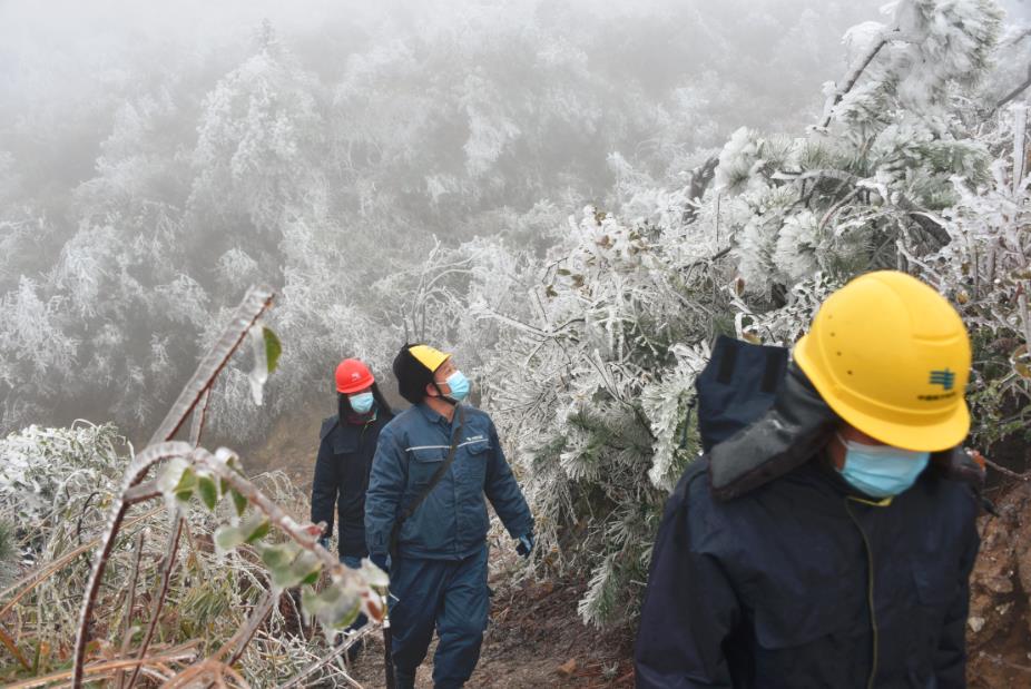 11月30日,南方電網廣東韶關供電局的工作人員開展覆冰前線路特巡。