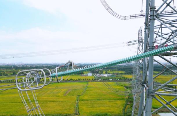 國網上海超高壓公司線路檢修人員在1000千伏特高壓吳塘線開展帶電作業消缺工作。