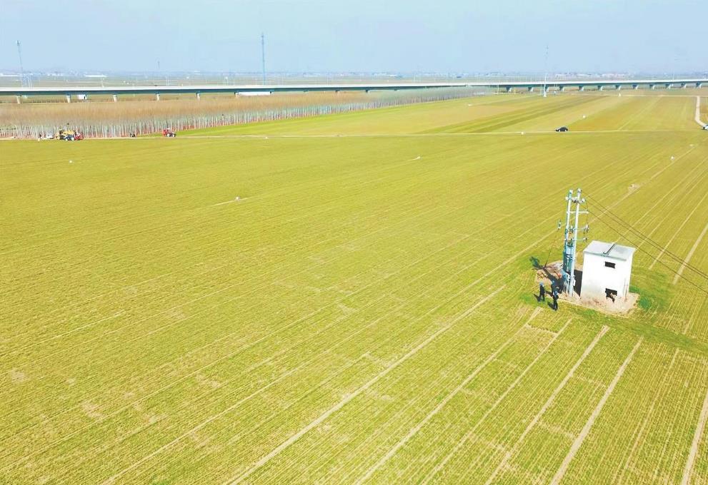 2月27日,河南省滑縣白馬坡高標準農田里,供電員工在特巡涉農供電設施,保障農戶春灌可靠用電。王亞方 攝