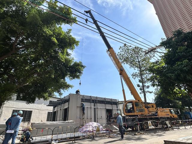 在施工技術上,江門蓬江供電局不僅引入了自動化挖掘機、起重機、混凝土攪拌車等機械,還摒棄傳統配電站的磚瓦結構,采用高強度、輕質、耐腐蝕的成品預制墻板及鋼結構等新型建筑材料,結合裝配式施工工藝,減少以往現場焊接、切割等工藝帶來的環境污染,大大縮短了施工周期,還減少建筑垃圾的產生。“與傳統純人工施工方式相比,本工程機械化率達到85%,工期壓縮了80%,大大減少了對附近居民的影響,也降低了施工過程中的安全隱患。”羅益榮說。