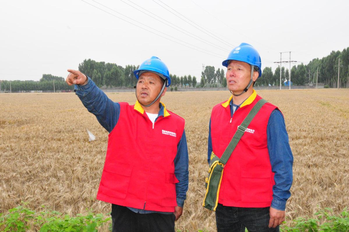 在沁陽市道口村的小麥搶收現場,共產黨員服務隊員深入田間地頭,向廣大農民朋友和收割機駕駛員發放電力設施保護宣傳資料,提高群眾安全用電和電力設施保護意識。