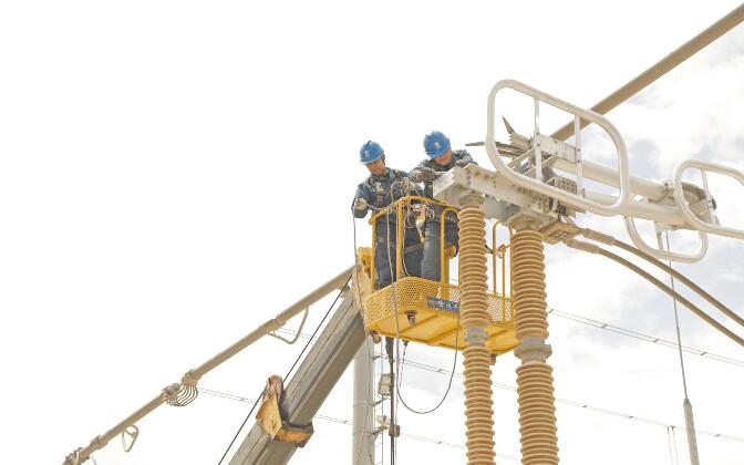 黨員突擊隊隊員檢修750千伏黃河變電站330千伏母線側隔離開關。祁玉金 攝