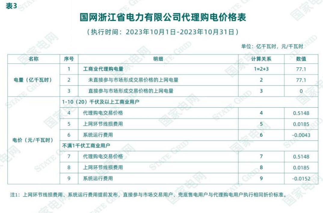 根據《國家發展改革委關于第三監管周期省級電網輸配電價及有關事項的通知》(發改價格〔2023〕526號)、《國家發展改革委辦公廳關于進一步做好電網企業代理購電工作的通知》(發改辦價格〔2022〕1047號)、《省發展改革委關于轉發<國家發展改革委關于第三監管周期省級電網輸配電價及有關事項的通知>的通知》(浙發改價格〔2023〕139號)、《省發展改革委關于轉發〈國家發展改革委辦公廳關于進一步做好電網企業代理購電工作的通知〉》(浙發改價格〔2023〕99號)、《省發展改革委關于轉發〈國家發展改革委辦公廳關于組織開展電網企業代理購電工作有關事項的通知〉的通知》(浙發改價格〔2021〕406號)、《2023年浙江省電力市場化交易方案》(浙發改能源〔2022〕302號)、《省發展改革委 浙江能源監管辦 省能源局關于做好2023年度浙江省電力市場化交易相關工作的通知》《國網浙江省電力有限公司關于報備代理購電價格預測機制的函》(浙電函〔2022〕169號),經報省發展改革委備案,我公司就2023年10月1日至2023年10月31日代理購電價格有關事項進行公示,詳見《國網浙江省電力有限公司關于2023年10月代理工商業用戶購電價格的公告》。