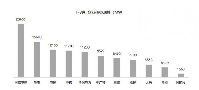?圖:據(jù)公開數(shù)據(jù)統(tǒng)計,2022年1-9月企業(yè)招標(biāo)規(guī)模(MW)
