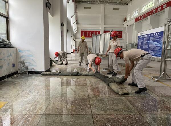 該公司防汛值班人員在接到強降雨預警后,立即上報公司防汛領導小組,公司立即啟動防汛應急預案,立即組織防汛與水情專職人精準測算降雨量、來水及洪峰到達時間,公司全員立即投入防汛戰斗,快速落實應急救援、防洪度汛措施。公司各防汛應急小組立即拉開拉網式防汛隱患排查和緊急處置,對廠房、大壩、廊道等重點部門全方位排查,及時疏通所有排水溝,實時關注來水較大部位,及時果斷采取防汛措施。