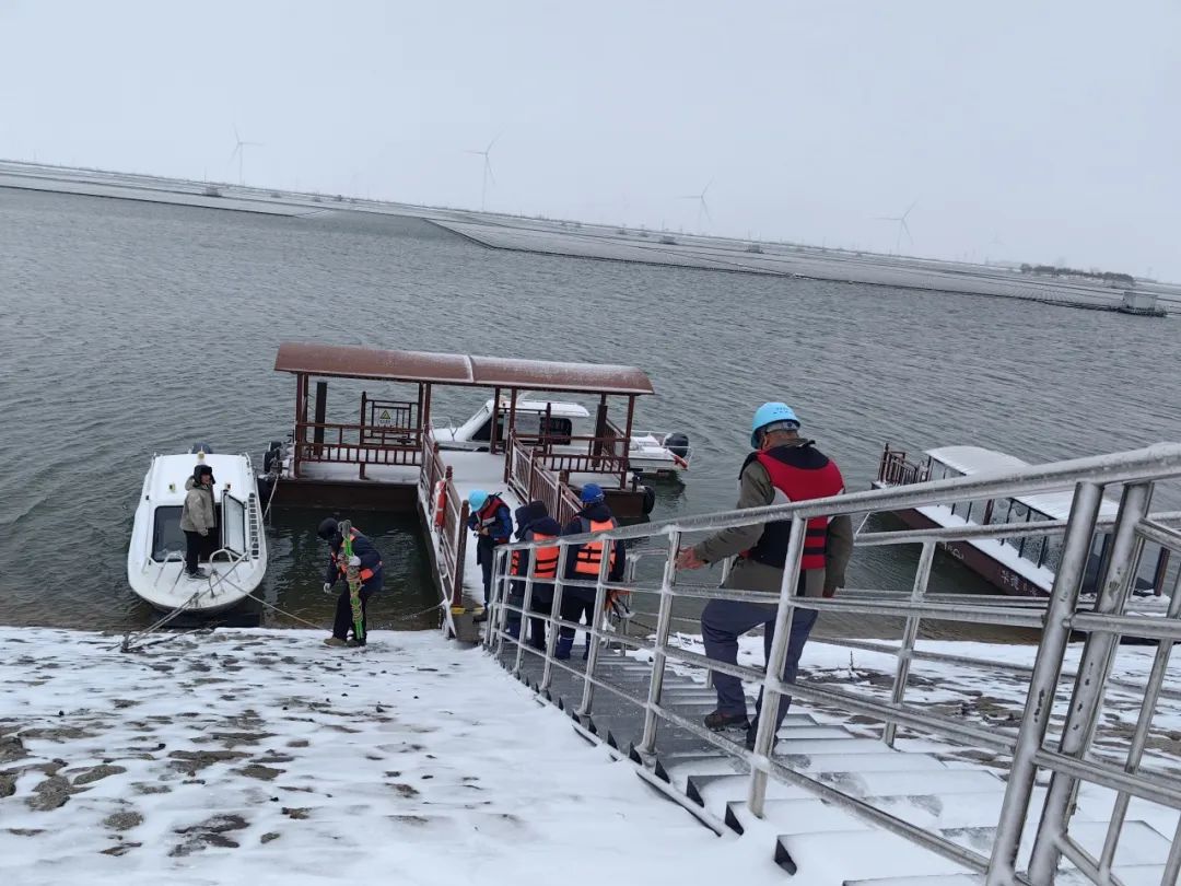 德州丁莊光伏項目現場,冒雪搶修集電線路故障。其他光伏電站主動對光伏支架、傳輸設備儀器開展專項安全隱患排查。各風電場運行人員及時清理設備積雪,加強對箱變、匯集線路、機組葉片等重點區域的特巡,做好隱患排查,確保設備安全穩定運行。