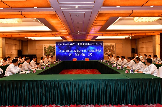 本網訊 7月18日,中國華能集團有限公司與保定市人民政府戰略合作框架協議簽約儀式在保定舉行。集團公司總經理、黨組副書記鄧建玲,副總經理李向良,保定市委書記黨曉龍,保定市委副書記、市長閆繼紅出席活動。鄧建玲、黨曉龍在儀式上致辭,李向良、閆繼紅分別代表雙方在協議書上簽字。