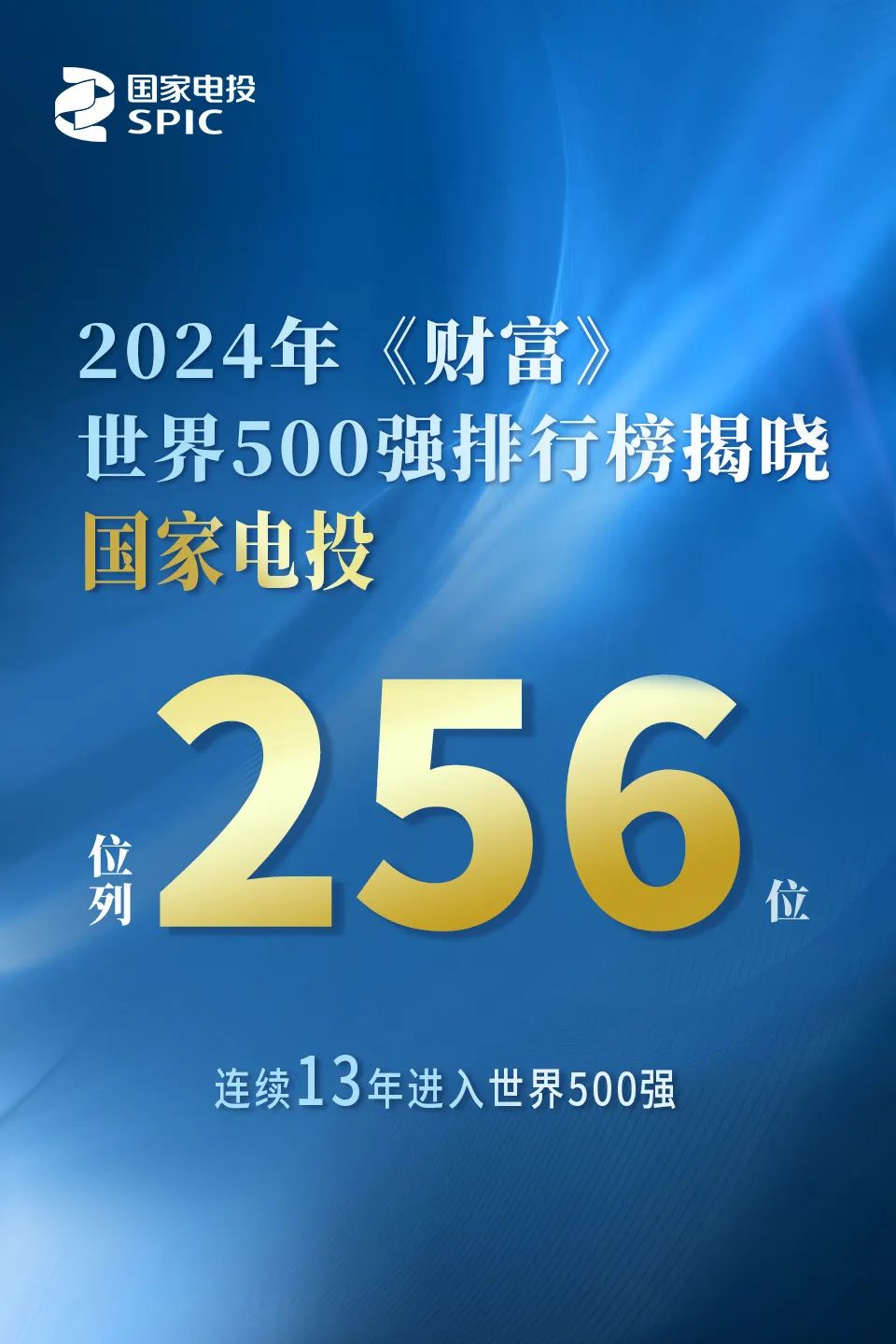 2024年《財富》世界500強排行榜揭曉,國家電投位列第256位,連續13年進入世界500強。