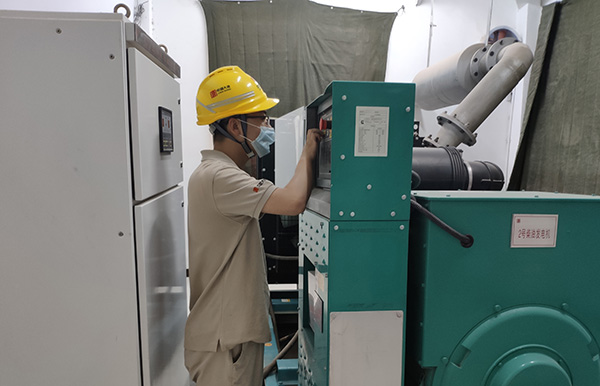 團(tuán)員青年檢查防汛柴油發(fā)電機(jī)設(shè)備