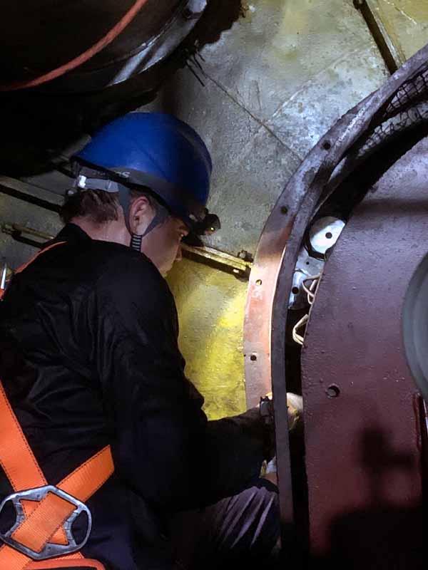 一臉汗漬、滿手油污