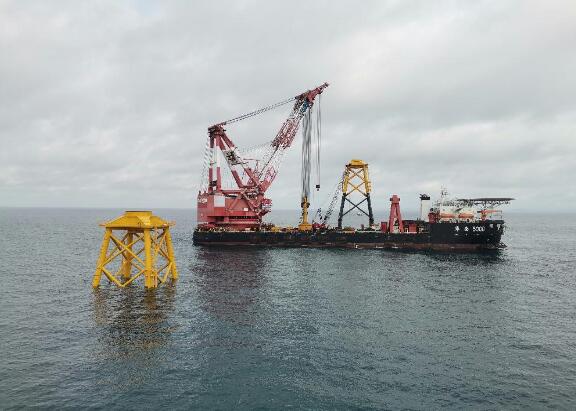 5月5日,中國能建廣東火電順利完成粵電陽江沙扒海上風電項目首臺四樁導管架風機基礎安裝。該導管架高度超50米,總重超930噸,是目前已知國內最大最重的四樁導管架風機基礎之一。