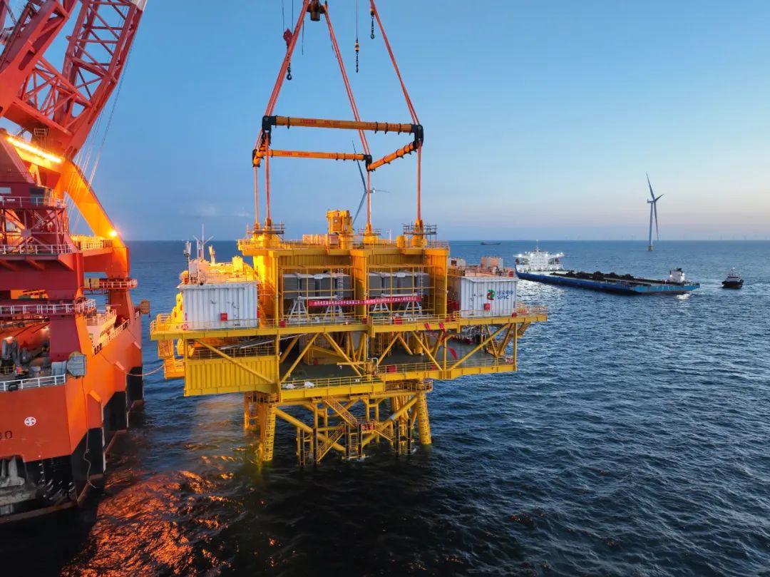 海上升壓站作為海上風電輸變電關鍵設施,被稱為海上風電的心臟。風力發電機產生的清潔電能,經海底電纜匯集到海上升壓站升壓至220千伏,再經海底電纜將電能輸送至陸上集控中心并入電網。