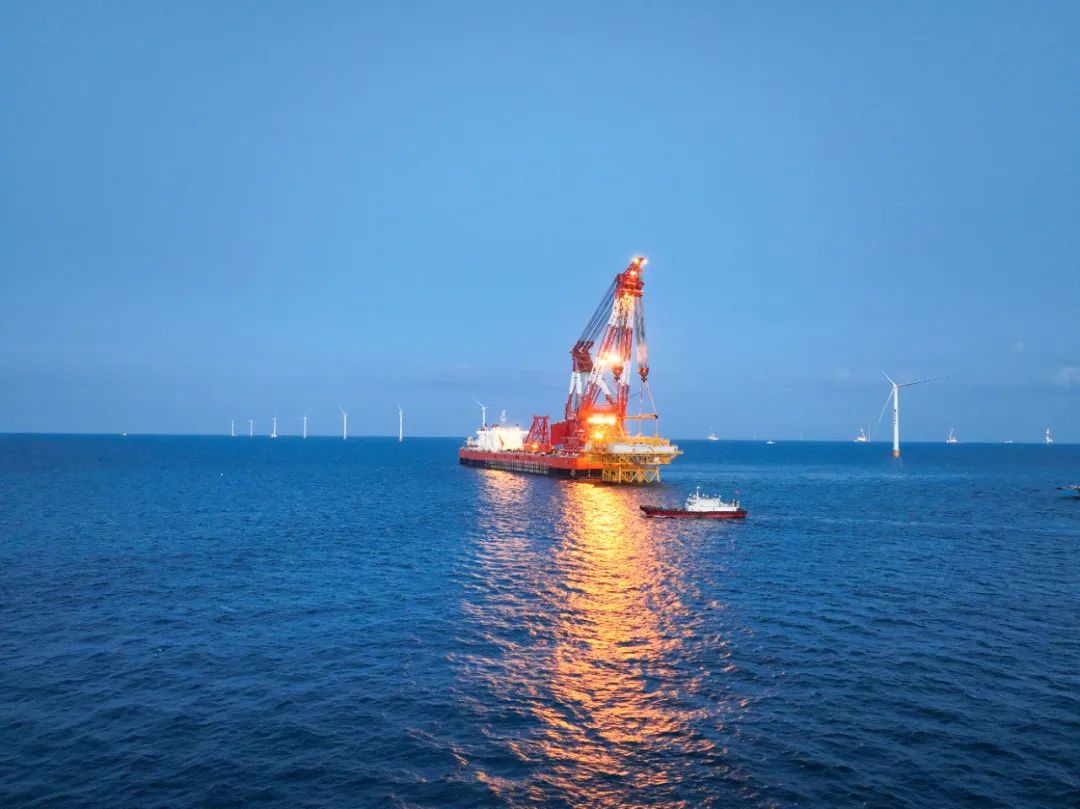 8月23日18時58分,國家電投山東能源投資建設的山東半島南U1場址海上風電項目海上升壓站上部組塊與導管架精準對接,標志著國內單體容量最大、集電線路電壓等級最高的模塊化預裝式海上升壓站吊裝順利完成。