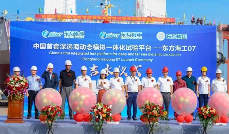 東方海工07號長128m,寬42m,型深9米,為全鋼制無動力固定式平臺,安裝有2個36m大直徑電纜轉盤、平臺上配備串聯諧振耐壓測試設備、絕緣電阻測試儀、彎曲剛度試驗機、疲勞試驗機等海纜檢測設備10余臺(套),總投入約1.6億元。