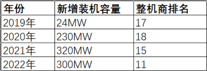 在華儀電氣正處在資本市場的水深火熱之時,2020年退市并逐漸卸掉包袱的華銳風電,近年來卻表現出強勁的增長勢頭。2019-2022年,華銳風電新增裝機排名不斷向上提升。