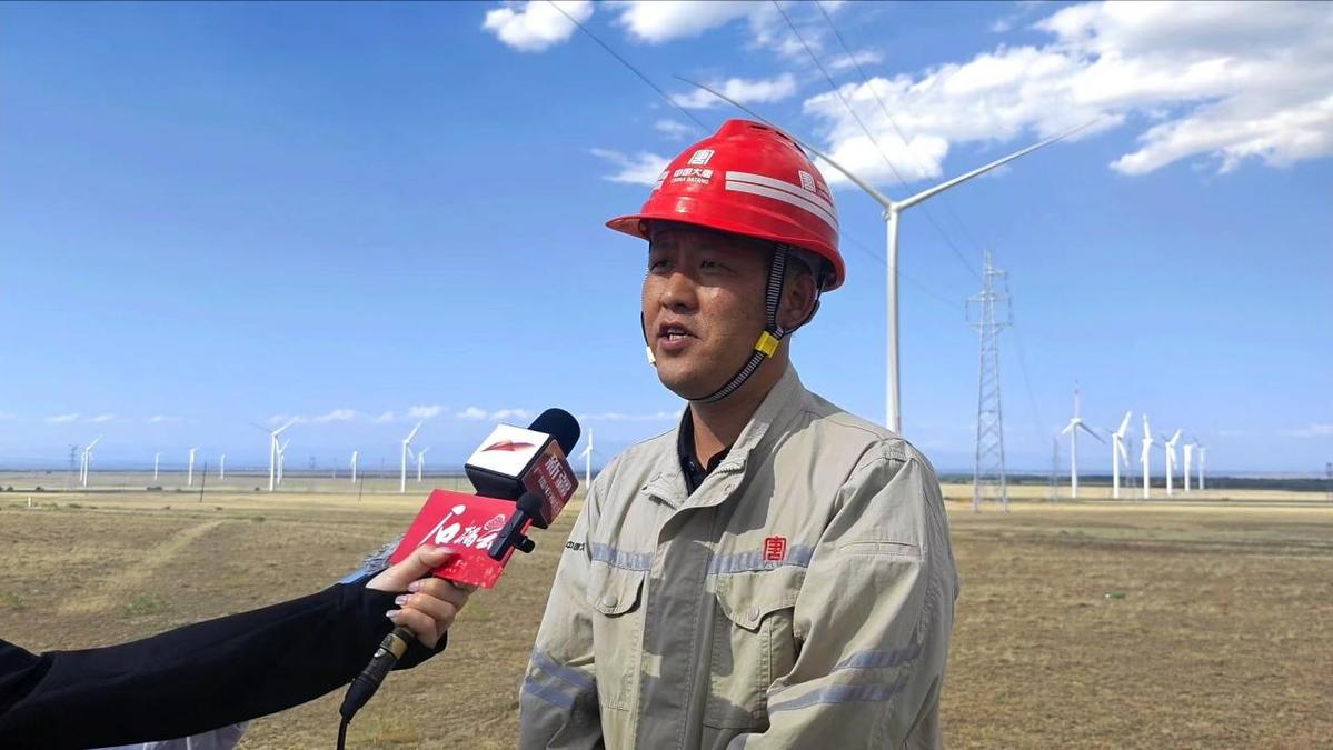 圖:大唐托里縣清潔能源有限公司老風口風電項目副經理祁景華介紹風力發電項目進展