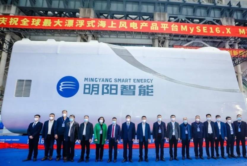 1月10日,明陽智能正式發布18兆瓦全球最大海上風電機組——MySE18.X-28X,并下線全球最大漂浮式海上風電機組MySE16.X-260。