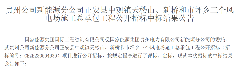 公告顯示,中國電建集團貴州工程有限公司成功中標該項目,中標價格為29242.222800萬元。