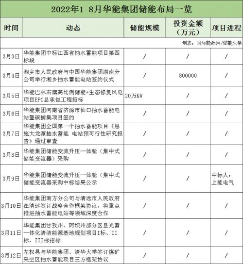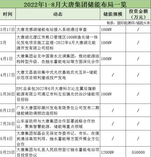 據不完全統計,2022年1-8月,大唐集團儲能項目招標3個,與山東、保定、南水北調集團等簽訂合作協議,涉及抽水蓄能、智慧能源等領域。