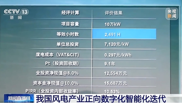 總臺央視記者 古峻嶺:正是通過這種空天地面的多種數(shù)字化、智能化的科技手段,使得風力資源可以得到最大限度的優(yōu)化利用。高度智能化的運維系統(tǒng),不光可以實時監(jiān)測到整個風電場的運行數(shù)據(jù),就連收益情況也能給你算得明明白白。