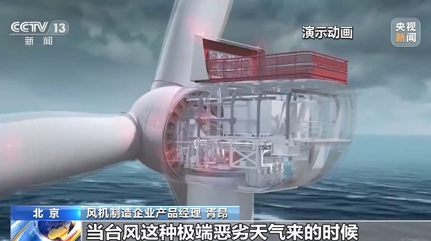 風機制造企業(yè)產品經理 胥昂:我們主要應用北斗以及5G,來實現(xiàn)風機最大化利用風資源,來實現(xiàn)發(fā)電量的提升;當臺風這種極端惡劣天氣來的時候,通過北斗衛(wèi)星的一個信號傳遞,來實時控制風機的方向以及姿態(tài),能夠安全、有效度過整個臺風的考驗。