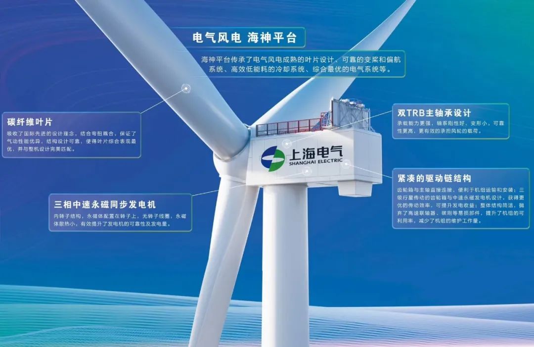海神平臺傳承了電氣風電成熟的葉片設計、可靠的變槳和偏航系統、高效低能耗的冷卻系統、綜合最優的電氣系統等。在碳纖維葉片、雙TRB主軸承設計、三相中速永磁同步發電機、緊湊的驅動鏈結構等方面創新設計,并針對不同海域的風資源稟賦和海洋地質條件,因地制宜,提供適合當地的最佳解決方案。