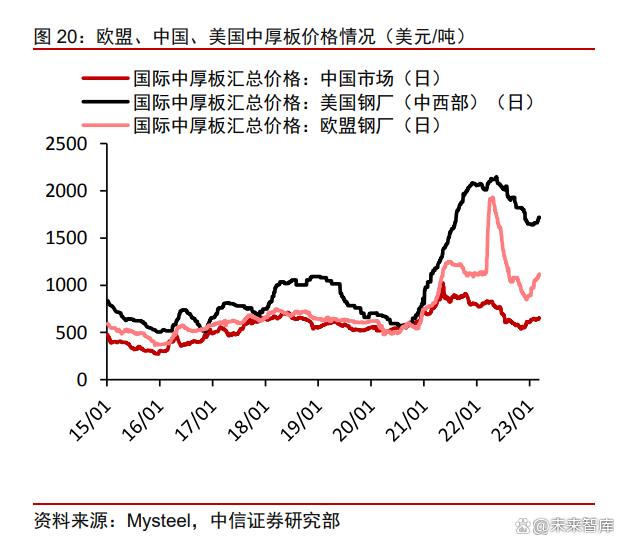 海外塔筒樁基生產成本高昂,國內成本優勢強化。對比歐洲單樁龍頭 Sif 平均出貨價 格近 2500 歐元/噸(約合人民幣 1.9 萬元/噸),且供需緊縮呈價漲趨勢,我國單樁價格約 0.8 萬元/噸。在原材料成本方面,以天風順能披露的數據為例,鋼材、法蘭等原材料成本 占塔筒總成本的 82%,其中鋼板(中厚板)成本占 57%,對比俄烏戰爭爆發以來的歐洲 鋼材價格暴漲,中厚板國內外價差拉大。2023 年 3 月歐盟鋼廠中厚板均價 1100 美元/噸, 美國鋼廠均價 1710 美元/噸,而中國市場均價 649 美元/噸。在人工成本方面,根據歐盟披 露,歐盟本地塔筒企業的人均人工成本為 4.8 萬歐元/年,明顯高于國內主要塔筒企業的人 均薪酬。我們預計塔筒環節有望進一步強化國產出海的成本優勢,樁基環節暫無反傾銷限 制,有望實現產品出口的突破。