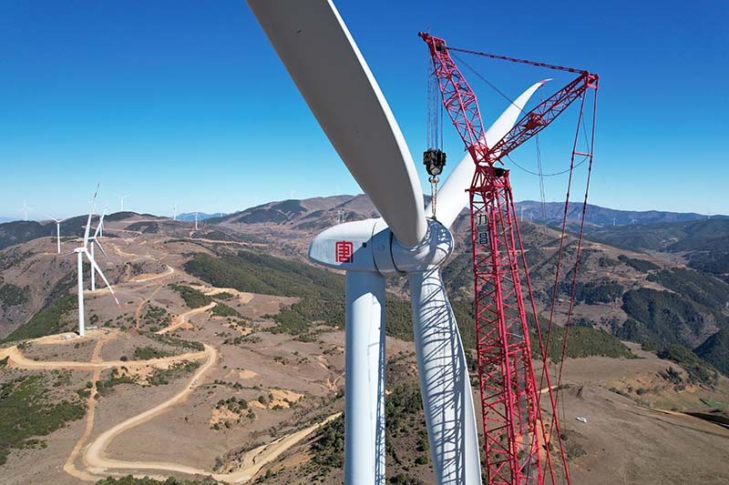 20日,在最后一臺風機--8號風機吊裝現場,中國安能建設者們正在準備發電機吊裝作業。“大家注意,起吊!”隨著吊車的啟動,葉輪慢慢向約95米的高空爬升。“今天基本沒有風,天氣晴朗,葉輪吊裝順利。”正在現場指揮的中國安能第二工程局普格采乃風電場項目經理魯大偉介紹道,普格采乃風電場項目的31臺風機終于完成了安裝,下一步將進入調試階段。
