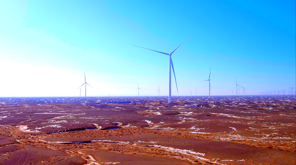 近日,由中國能建廣東火電承建的甘肅省高臺縣鹽池灘100兆瓦風電項目全容量并網發電。