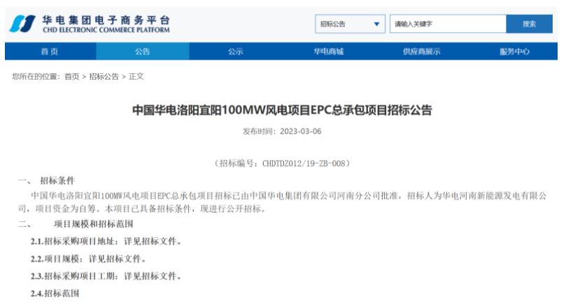 公告顯示,該項(xiàng)目總裝機(jī)容量為100MW。