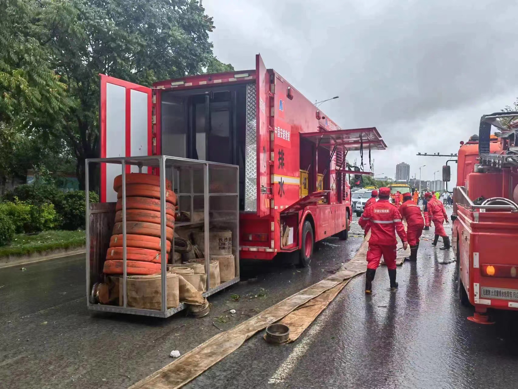 情況發(fā)生后,正在廈門備勤的中國安能二局搶險救援分隊緊急抽組168名救援員,攜帶挖掘機、裝載機等30臺(套)主戰(zhàn)裝備和油鋸、鐵鍬等搶險工器具,馳援晉江。