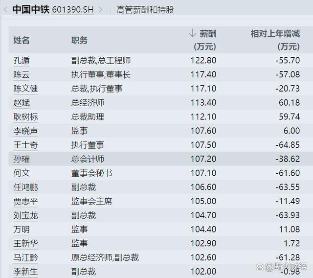 年報還披露,中鐵股份高管收入基本都超過百萬元,最高是副總裁兼總工程師孔遁,122萬元,董事長和總裁薪酬117萬元,監事會主席薪酬105萬元。并有6位高管持有20多萬股至40萬股股份。