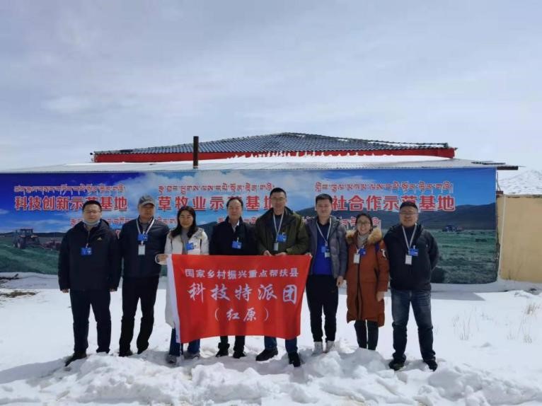 圖:紅原科技特派團在塘日村牦牛養殖合作社前合影