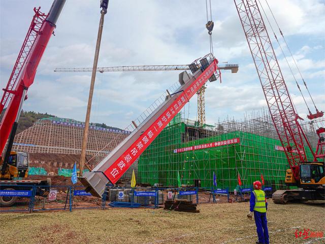萬興環保發電廠三期項目焚燒爐第一榀鋼架吊裝