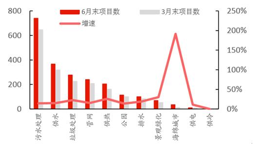 PPP在2016形成了熱點,截止2016年6月末,PPP全部入庫項目數量達9285個,總投資額達10.6萬億元;而環保方向的大概有1.4萬億元,在全行業中占比約13.2%;其中市政環保方向項目達2043個,較一季度末增長了322個;總投資金額達8919億元,增長了1633億元,增幅為22.41%。之所以舉足輕重,是因為市政環保類項目基本有相對成熟的盈利模式,在運營中能產生現金流,在PPP中屬于優質項目。