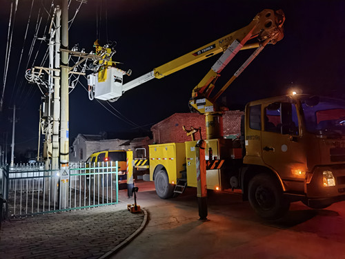 接到通知的應急搶修小組五人以最快的速度到達單位,此時此刻幾人臉上睡意全無,已然投入到搶修狀態當中。在了解完搶修任務后幾人馬上行動起來進行準備工作。二十分鐘后所有人員出發,在車上,工作負責人張于斯強調道:“現在是凌晨,外面氣溫達到零下二十一度,如果你們要是在上面進行更換熔斷器的時候有任何身體上的不適都要立即停止工作,下來暖和一會兒再干,干的慢點不怕,要保證身體處于一個良好的狀態,安全才是最基本的工作前提條件。”到達現場后,該處人員與礦區分公司負責人進行工作任務對接,重合閘退出并許可工作后,立即開始搶修。天寒地凍,讓搶修人員隔著三層防護手套依舊無法阻擋冷空氣將雙手凍僵,但在絕緣斗臂車上操作的人員手上的速度并沒有因此而放慢,經過三十分鐘的努力將損壞的熔斷器更換完成。為了避免二次事故,該處的搶修人員需要等送電完成才能離開,完成搶修后礦區供電分公司的同事立刻安排送電,低壓開關合上所有在場的工作人員的心同街道上的路燈一起明亮了起來,他們在黑夜里堅守在崗位上準備迎接新一年的到來。