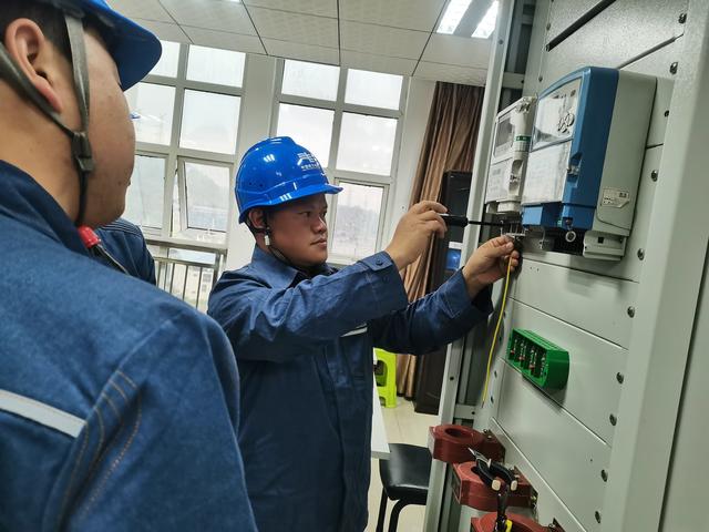 他總結出裝表接電“七步法”:第一步,安裝就位。將電能表、負荷管理終端、電流互感器、聯合接線盒等設備安裝就位,布置原則是電能表與聯合接線盒之間的垂直距離為15厘米,互感器之間的水平距離為15厘米。第二步,下料。根據互感器、聯合接線盒、電能表、負荷管理終端之間的距離按照黃、綠、紅、黑的相色對線材下料,并留有一定的裕度。第三步,綁扎。這一過程中嚴禁出現交叉。捆扎導線時,對應的3根黃、綠、紅導線和1根黑導線按照3-4-3的位置排列,即黃、紅兩色在外層,綠、黑兩色在內層,黑色靠外。第四步,走向。各個彎折點用扎帶捆扎,對齊后按預留8-10mm的長度剪齊。第五步,接入接線盒。將線頭按1.5-2mm的長度剝去絕緣層,套上號頭后與接線盒連接,擰緊螺絲。第六步,接互感器。線圈的做法,將導線折彎90度,用尖嘴鉗彎成半圓,再換一下手彎成圓形。線圈以順時鐘鉗入。第七步,按照接線盒到電能表和負荷管理終端之間的距離依次分色拆線接入。