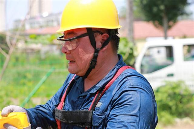 國網(wǎng)山東濱州供電公司員工完成帶電作業(yè)后,絕緣服下的工作服被汗水濕透。