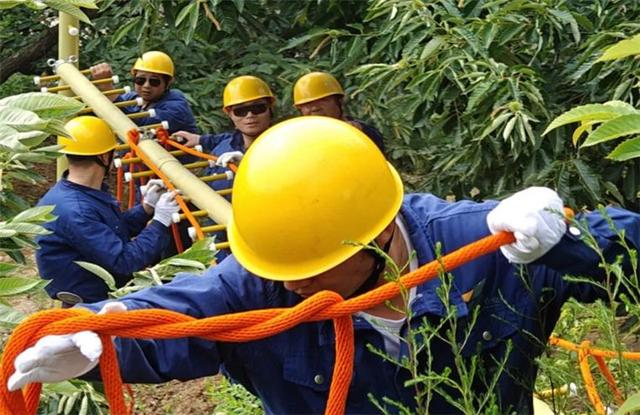 國網(wǎng)河南信陽淮濱縣供電公司員工開展防汛應(yīng)急演練。